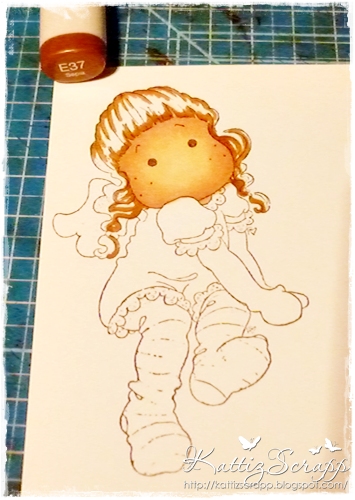 Kortstommen kanske syns lite dåligt men det är ett grålila cardstock. Mönstrade papper är från Ladybug and friends, både det undre och övre.